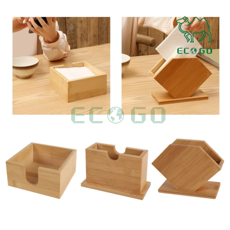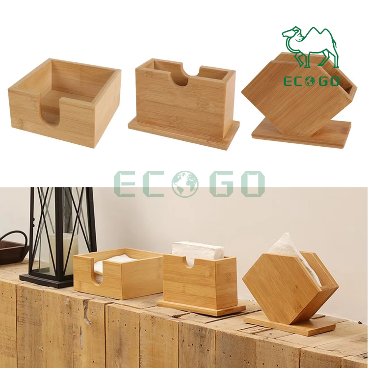 New Design Natural Bamboo Paper Tissue Container Wooden Home Tissue Napkin Holder for Table