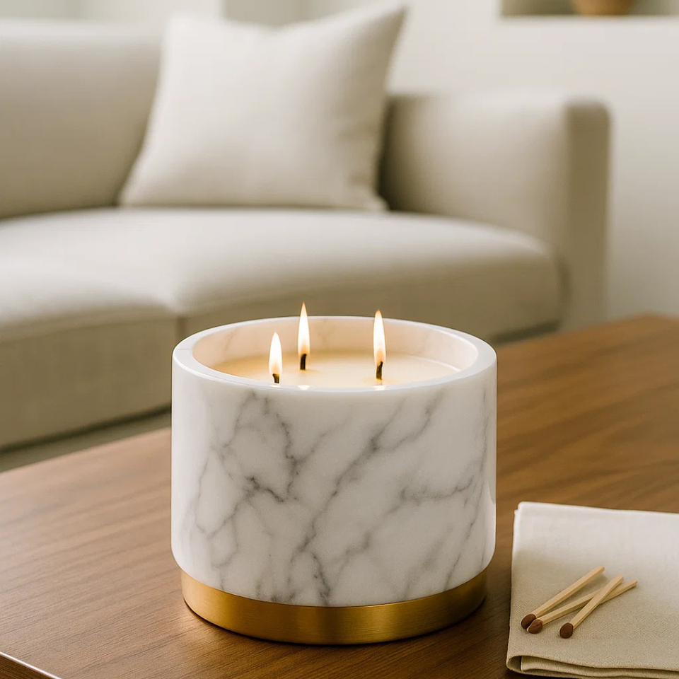 New Design Natural Marble Candle Jar Empty Gold Rim Base Factory Direct Handmade Custom Size Home Decoration Heat Resistant