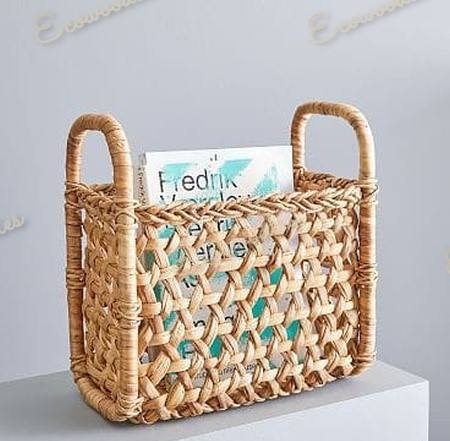 New Design Natural Wicker Magazine Rack for Bathroom Office Water Hyacinth with Handle Latest Design Wicker Storage Basket