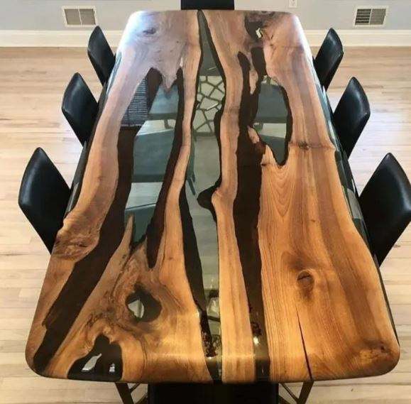 New Design Natural Wood Green Epoxy Dining Table Top for Sale Custom Made Living Room Furniture Manufacturer