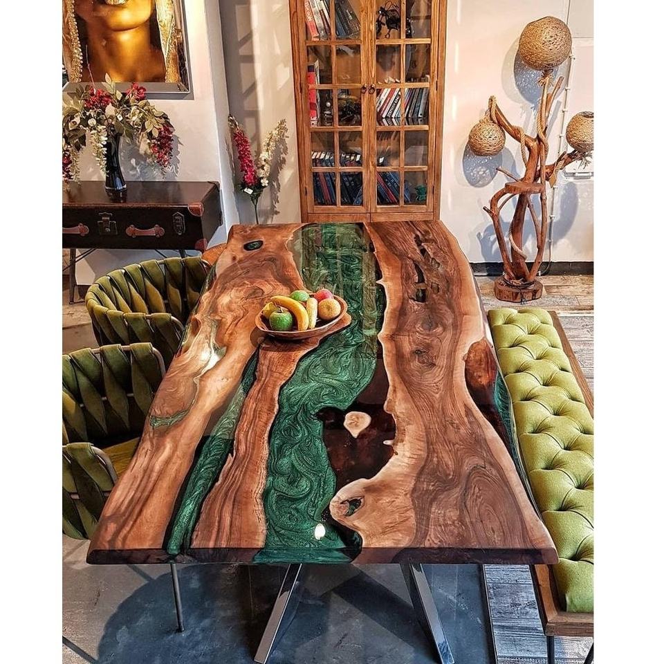 New Design Natural Wood Green Epoxy Dining Table Top for Sale Custom Made Living Room Furniture Manufacturer