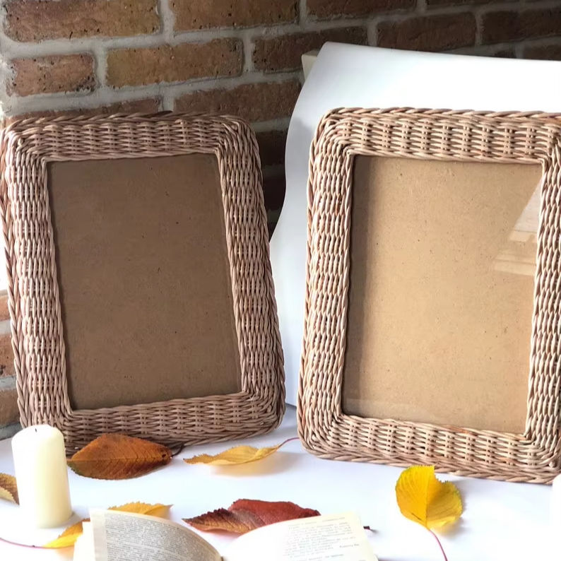 New Design Nordic Boho Wood Rattan Picture Frame Photo Frame for Bedroom Decor