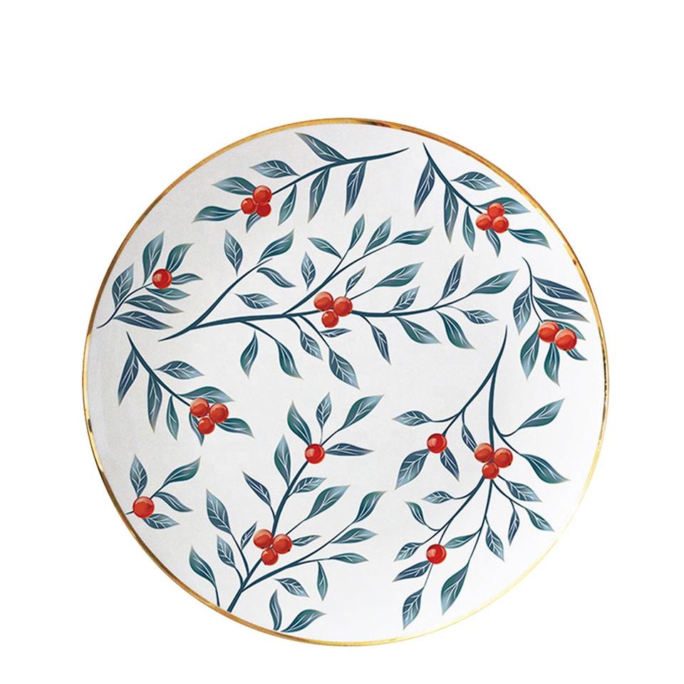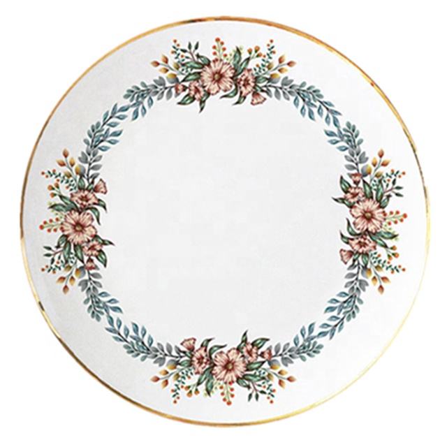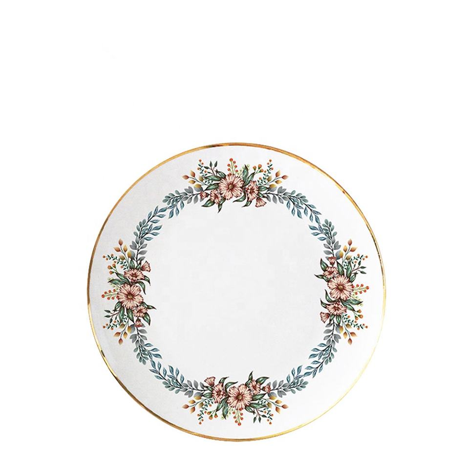 New Design Nordic Luxuriant Garland Pattern Ceramic Dishes Plates With Gold Edge