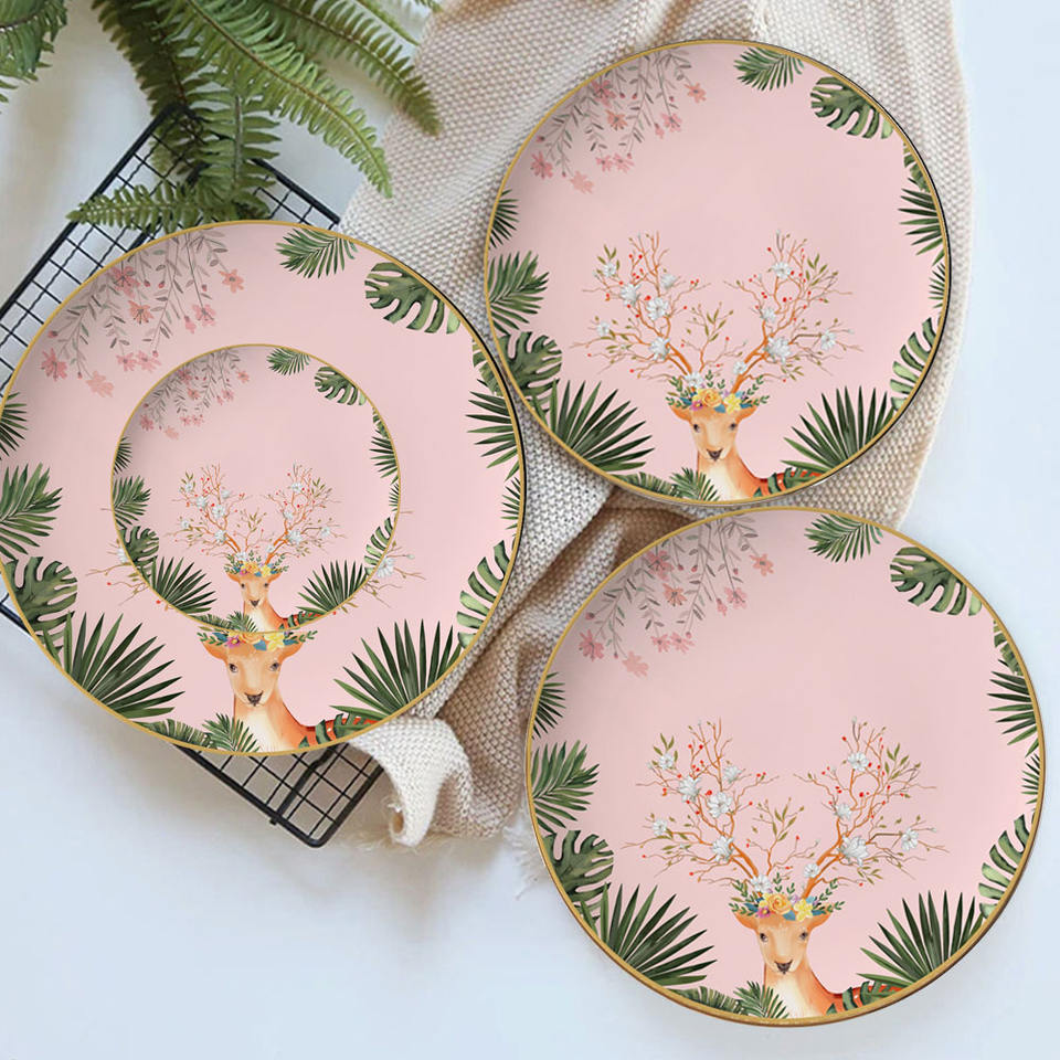 Product Name:New design Nordic luxury Elk Pink Ceramic Plates Set