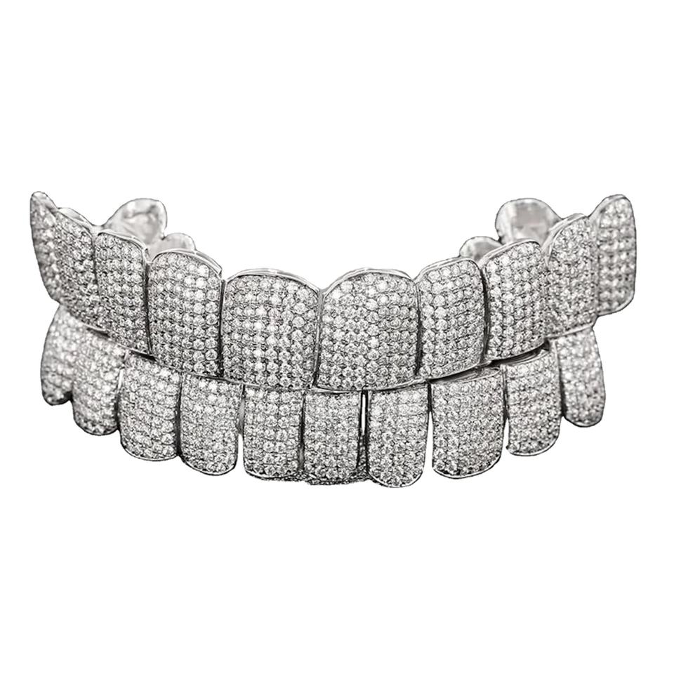 New Design Permanent Grillz Hip Hop Teeth Cover Moissanite Iced Out Gold Tooth 925 Sterling Silver Teeth Silver Gold Punk Grillz