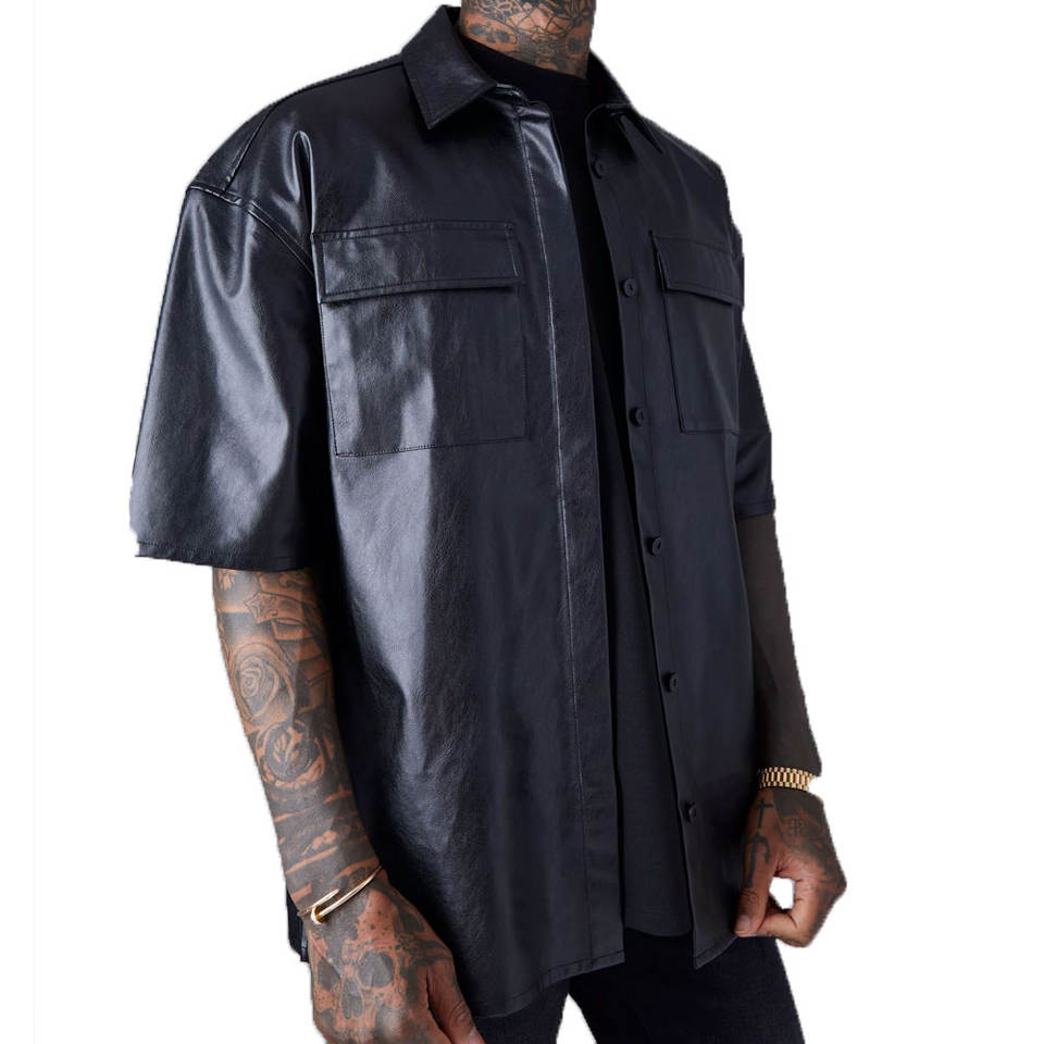 New Design Plain Color Men Leather Shirt Low Price Adjustable Custom Design Leather Shirts Solid Color
