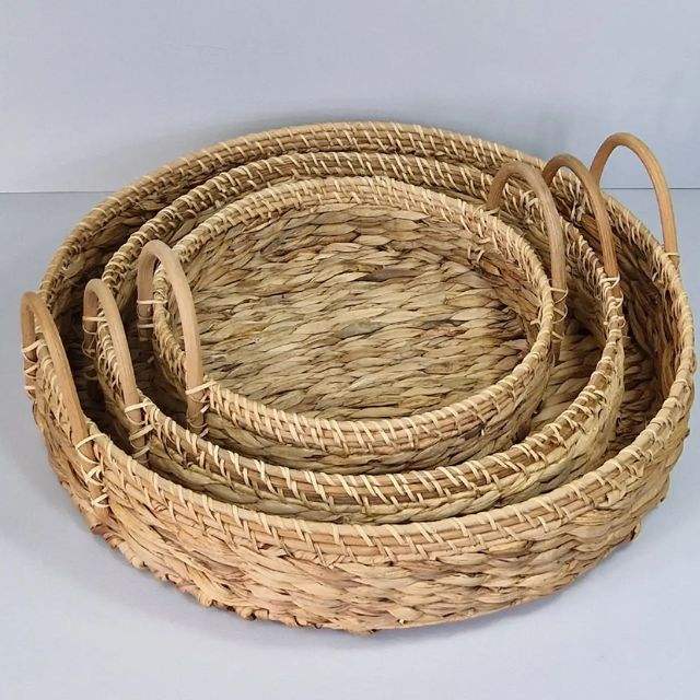 Rattan mix water hyacinth round serving tray set of 3 size with handleProduct Name