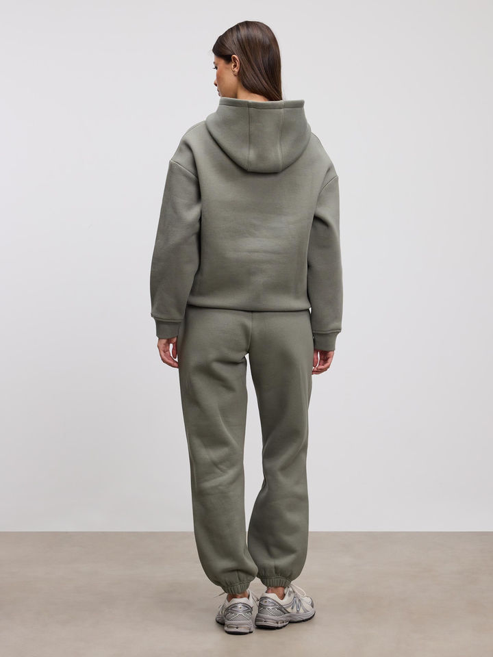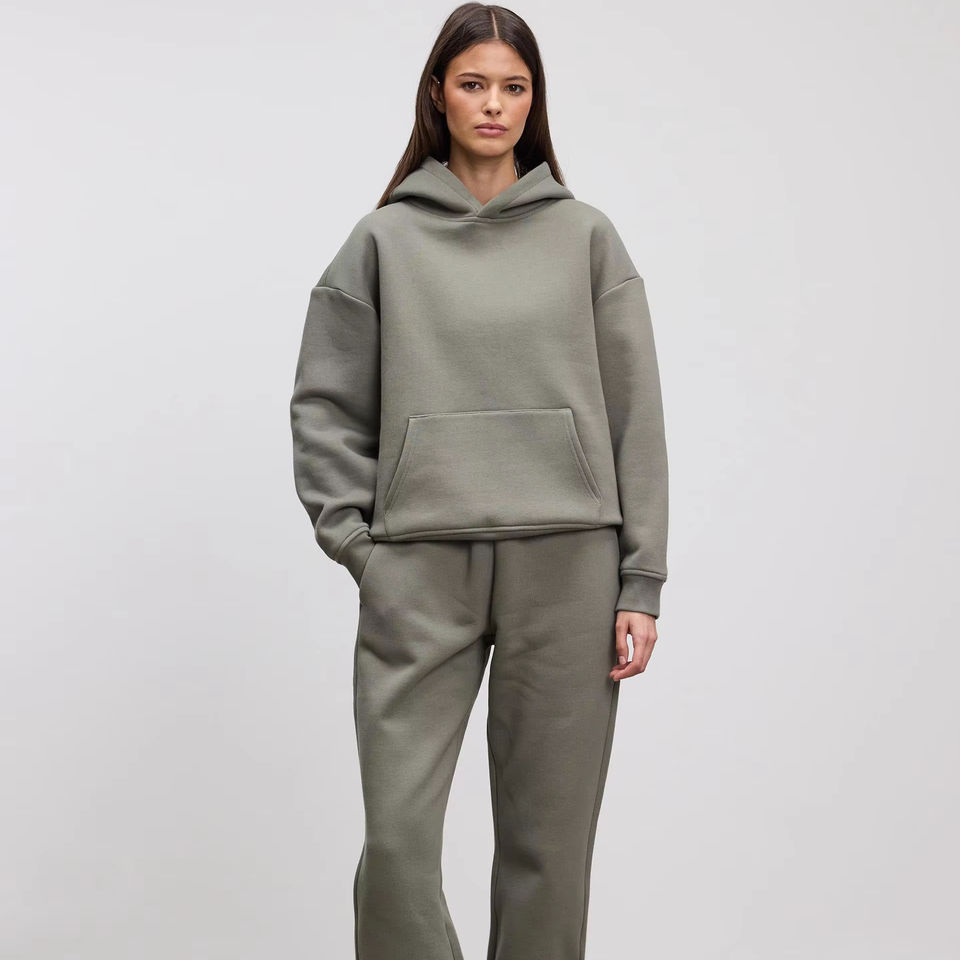 New Design Casual Solid Relaxed Hoodie & Jogger Set Pockets Sage Drop Shoulder Two-Piece Tracksuit Women Gym Training Streetwear