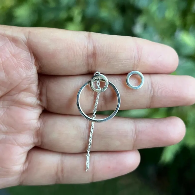 Silver Round Long Earring