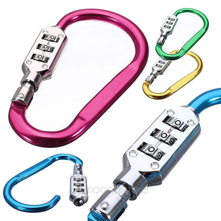 New Design Small Travel Smart Combination Lock Bottle Hook Buckle Carabiner with Hanging Code Chain for Camping Hiking