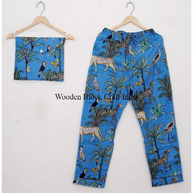 New Design Soft and Breathable Material Pure Cotton jungle Printed Designer Night Suits Top and Pajama Sets from India Wholesale