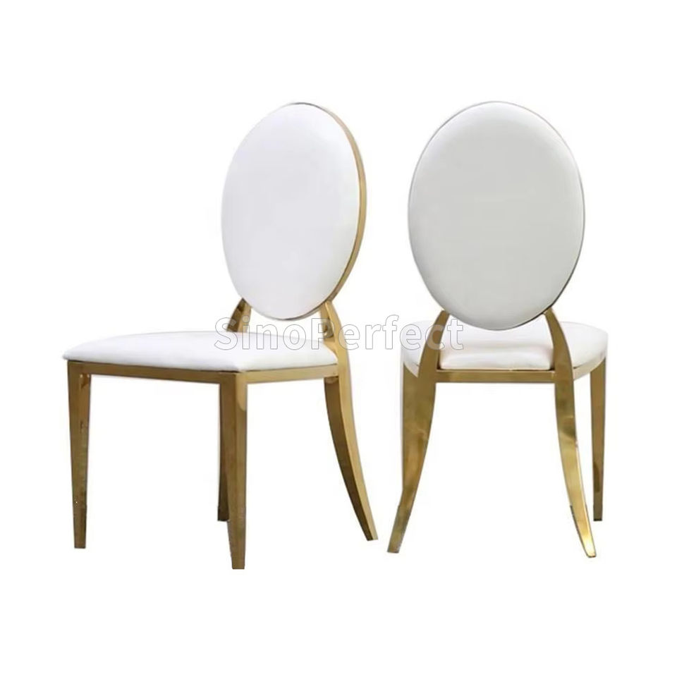 New Design Stackable Outdoor Decoration Furniture Hotel Stainless Steel Legs Round Back Wedding Banquet Dining Chair