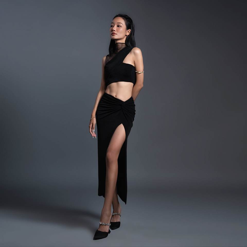 Description:Slit skirt, body fit