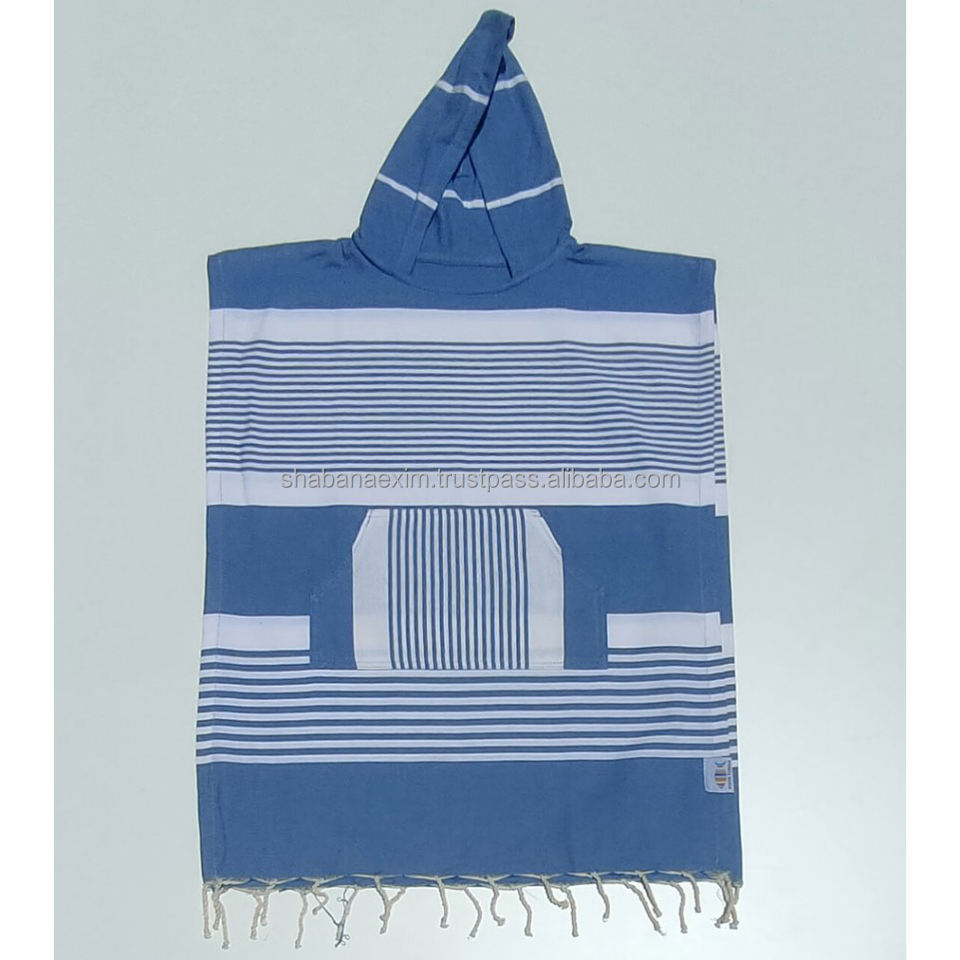 New Design Striped Design Hoody Poncho Customized Striped Bath Towel Cotton Handmade Turkish Hooded Poncho Indian