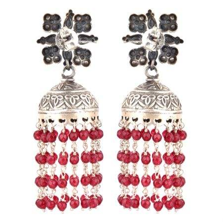 New Design Stylist 92.5 Sterling Silver Earrings with Floral Stud Red Chandelier High Quality Earrings for Women on Party