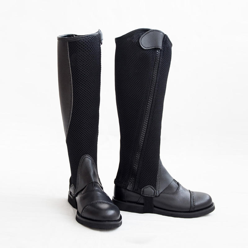 New Design Summer Unisex Horse Riding Half Chaps Breathable Mesh & Joint Leather Kids & Adults