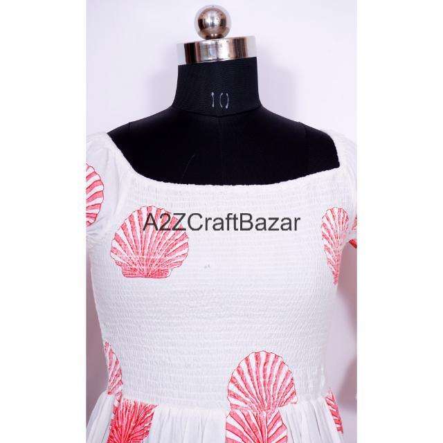 Modern Fit Elegant Romantic O-Neck A-Line Midi Tunic Dress Breathable Washable Knitted Summer Cotton Hand Block Floral Pockets