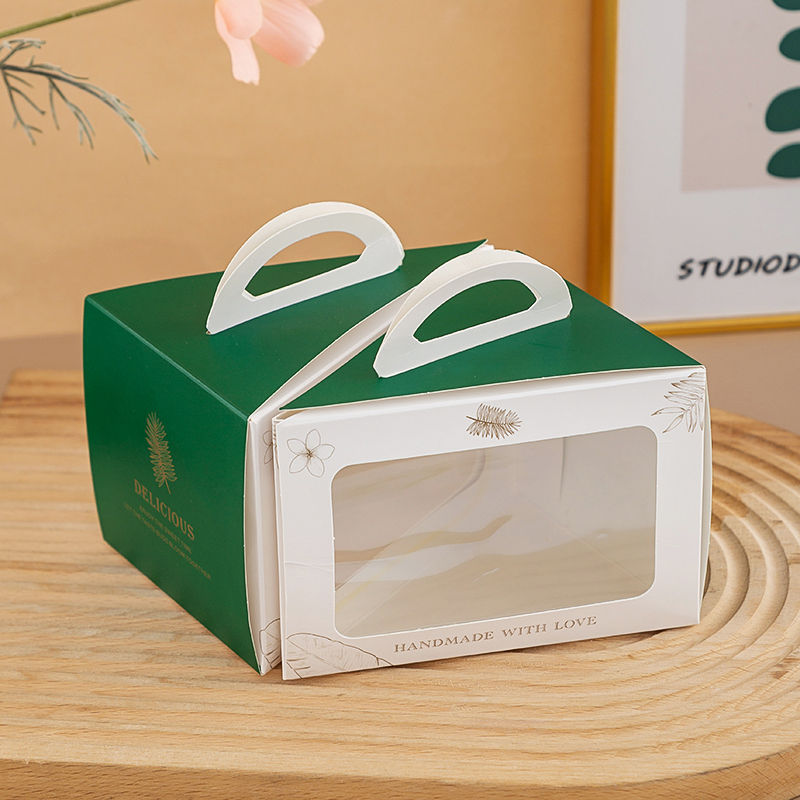 Portable Transparent Hand-Cut Cake Box with Embossing Printing New Design for Sandwiches and Small Cakes