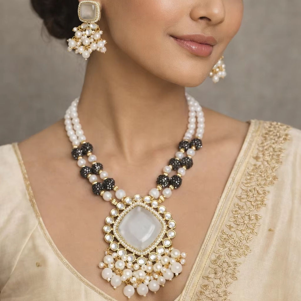 New Design Trendy Stylish Brass Traditional Pearl & Kundan Choker Necklace Set for Women Wedding Anniversary Gift Party