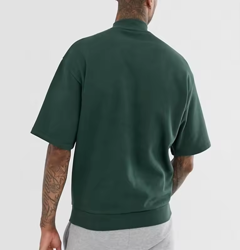 New Design Turtle-neck Off-the-shoulder T-shirt for Outdoor Casual Men Blank Cotton Short-sleeved T-shirt for men