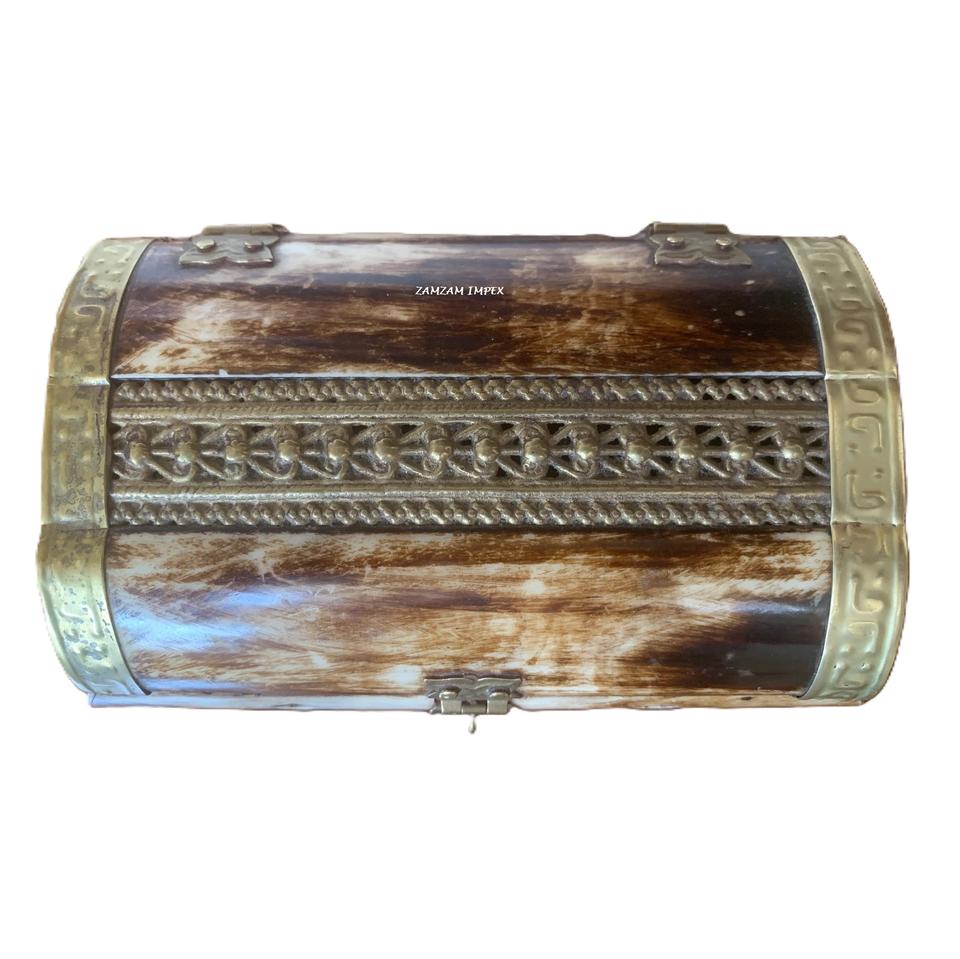 Vintage Bone and Brass Chest Style Rectangle Jewelry Trinket Box Decorative Storage Organizer for Rings, Earrings, and Keepsakes