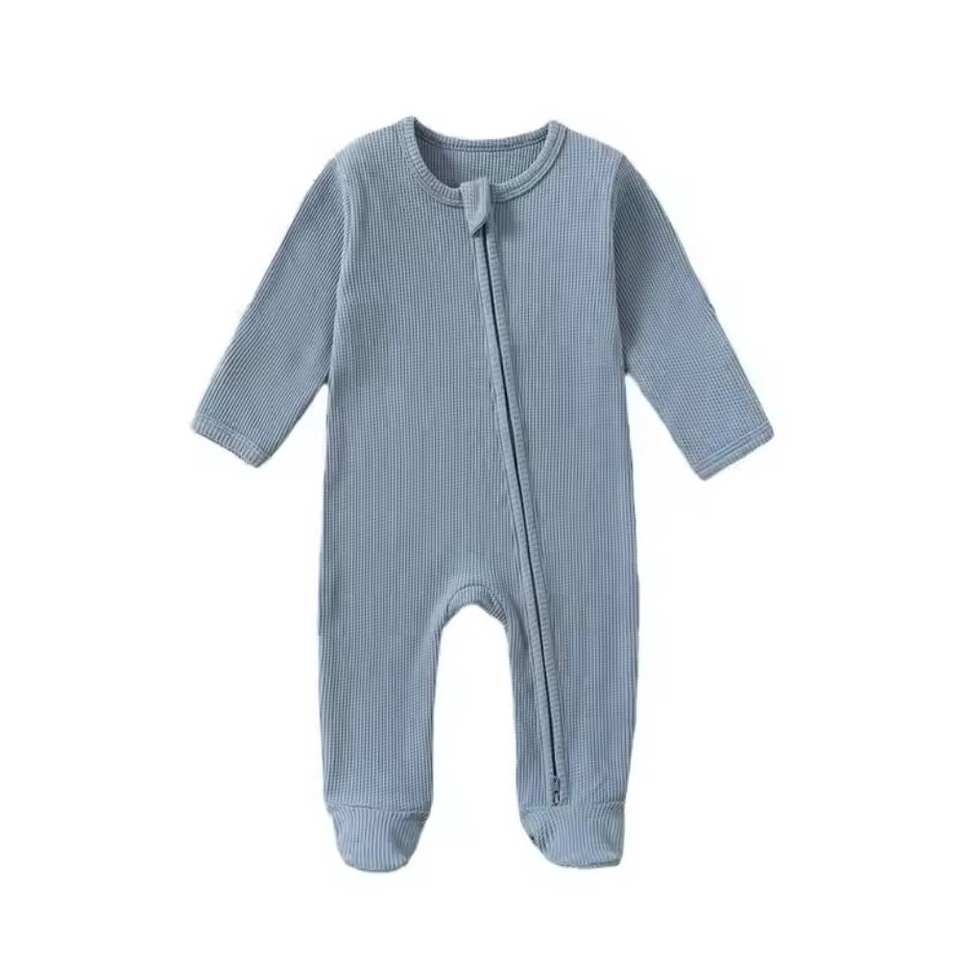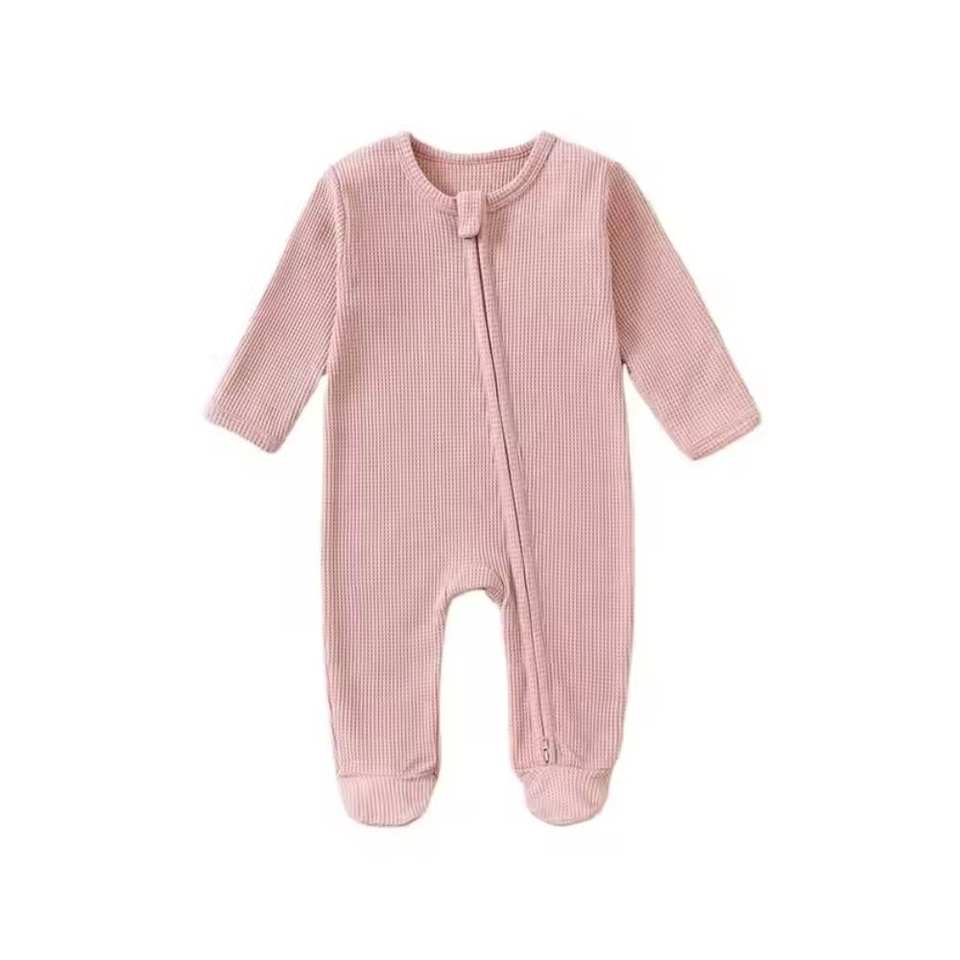 New Design Waffle Pure Color Baby Romper Soft Breathable Long Sleeve Baby Rompers Zipper Baby Pajama