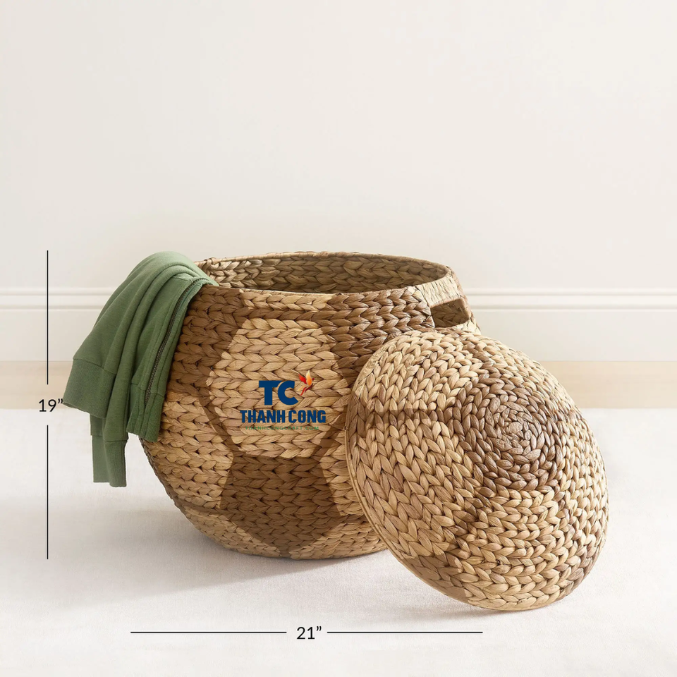 New Design Water Hyacinth Basket for Clothes Storage Home Decor Soccer Sports Hamper Bathroom Organizer Handmade Gifts