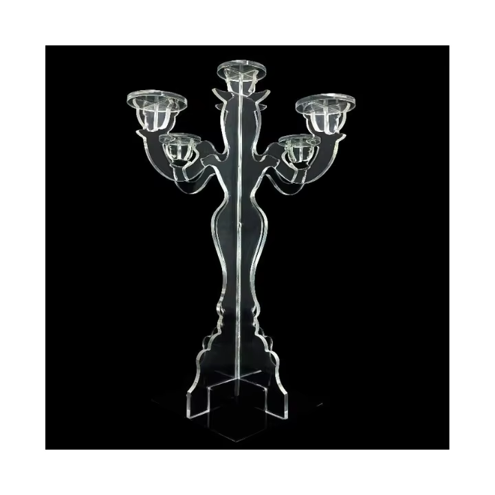 New Design Wedding Centerpiece Table Candle Stand Unique Crystal 5 Arms Candelabra Acrylic Candle Stand Transparent Candle Stand