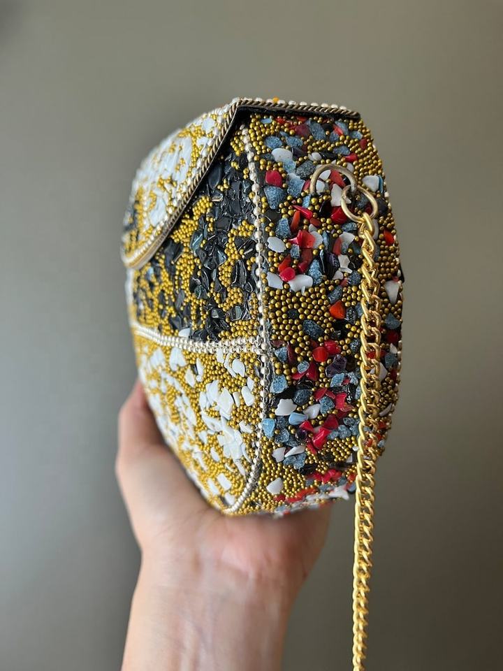New Design White Color Oval Beautiful Resin and Mosaic Clutch Bags for Women Wedding Wear Bag at Low Price by LUXURY CRAFTS