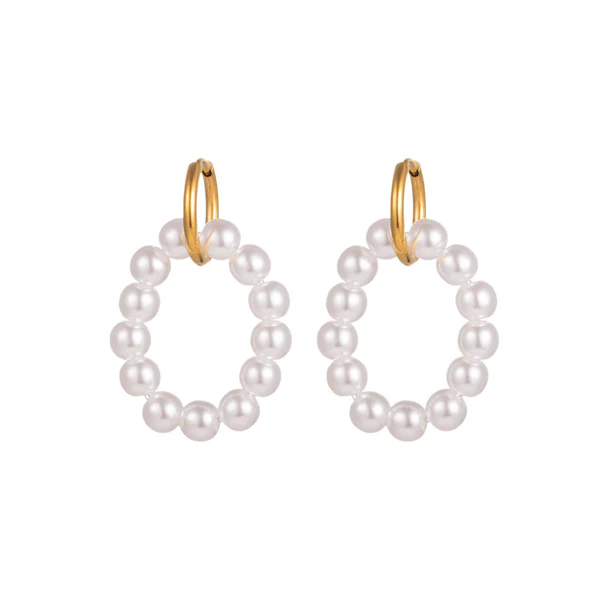 New Design White Natural Freshwater Pearl Classic Hoop Earrings for Women Dangle Freshwater Pearl Earrings