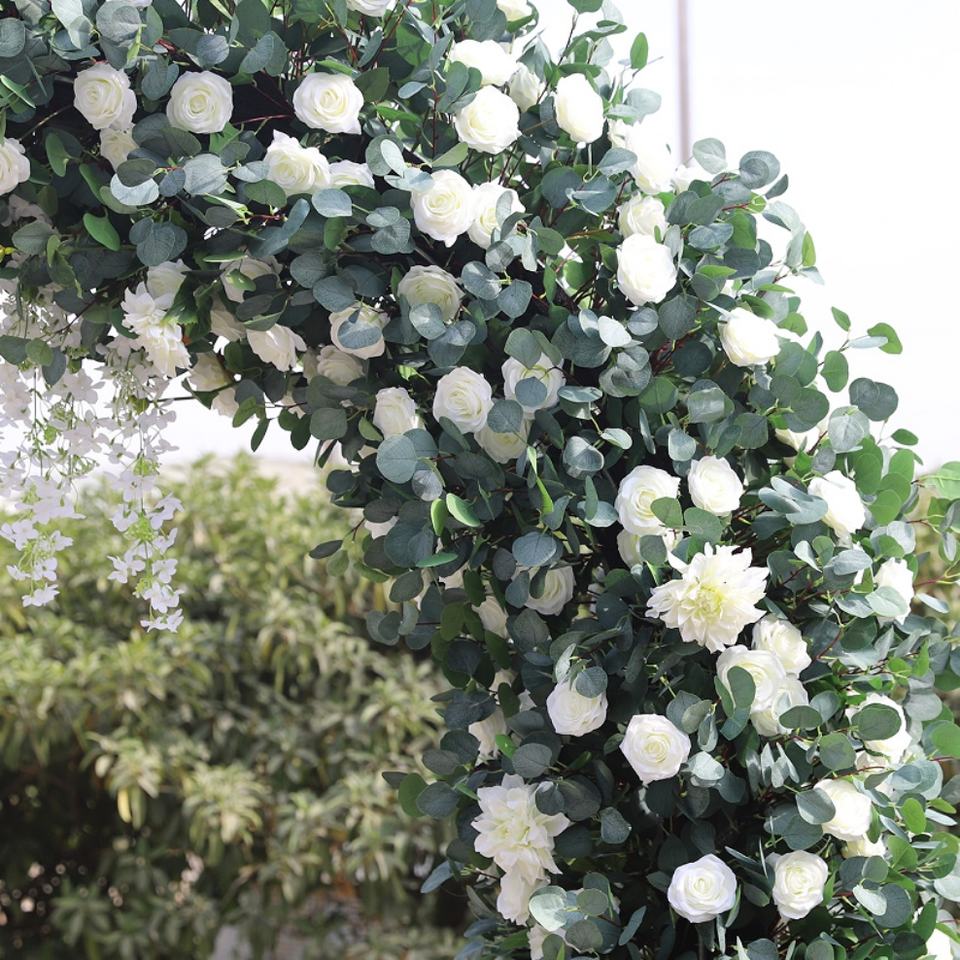 New Design White Rose Arch Artificial Flower for Wedding Decorations Silk Fabric Ornament Roses Arch Landscape with Leaves