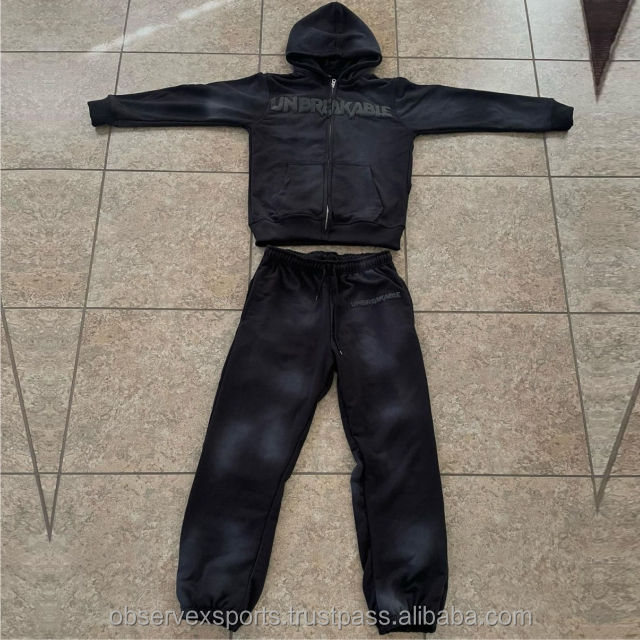 New Design Winter Streetwear Heavyweight Cotton Embroidery Stacked Custom Cargo Pants and Hoodie Unisex Sets Flare Joggers Suits