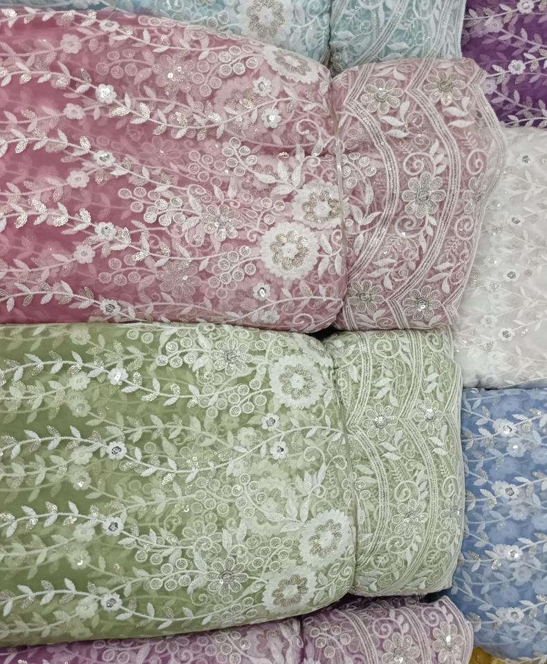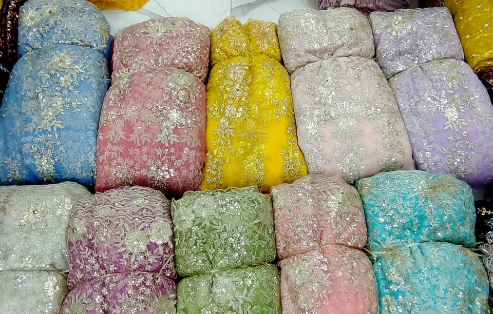 New Design With Zari Sequence Net Fabric Width 56 Inch Garment Fabric for Women Wedding Dress Making