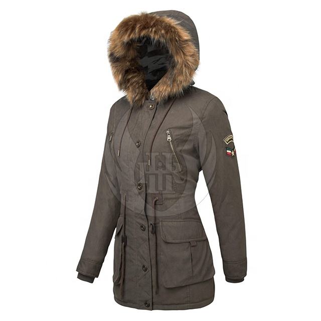 New Design Women's Long Winter Coat with Detachable Fur Hood Formal Outerwear Plus Size Pocket Decoration and Lines