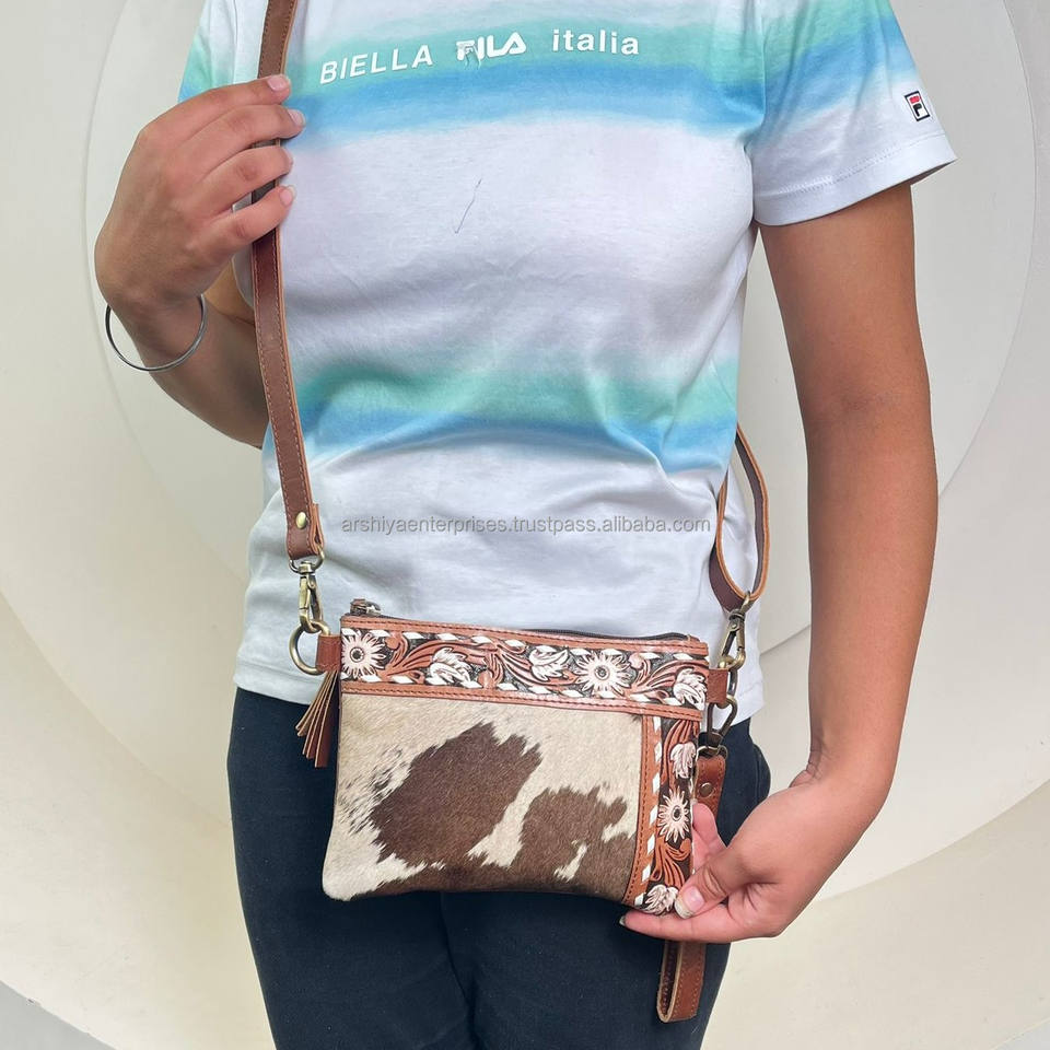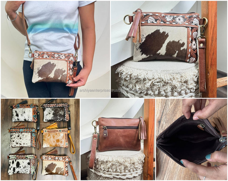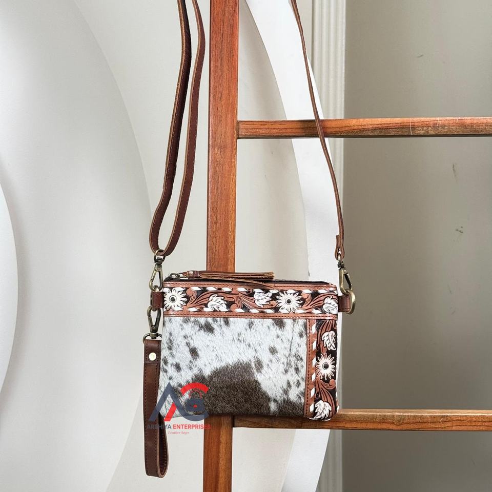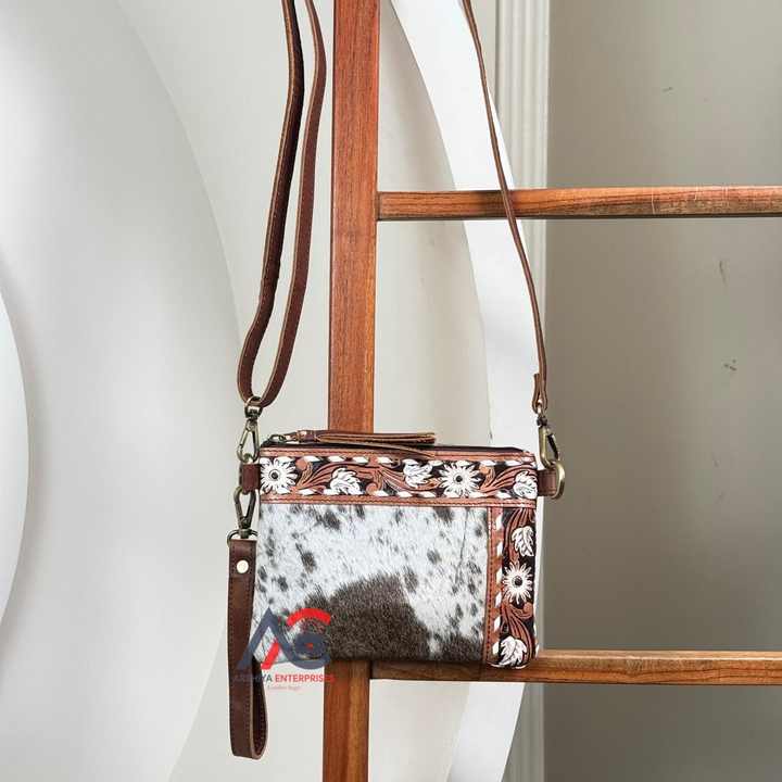 Hand Tooled Cowhide Fashionable Crossbody Bag