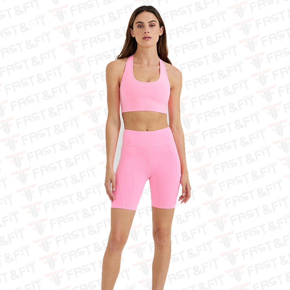 New Design Women's Quick Dry Yoga Shorts and Bra Set Fitness Compression Shorts Above Knee Solid Pattern MOQ 2pcs