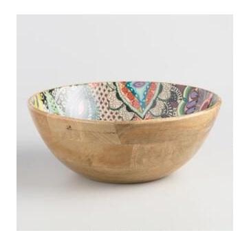 New Design Wooden Bowls for Fruits Bowl Set with Enamel Coated Print for Restaurant and Hotel Decorative Bowls Japanese Style