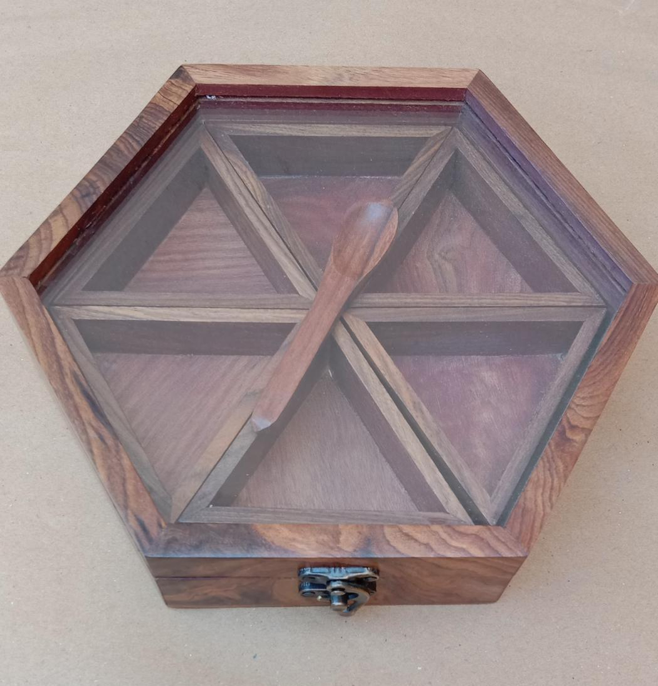New Design Wooden Spice Box Container Spices Storage Box with Shiny Polished Acrylic Lid Handmade Wood Spice Box