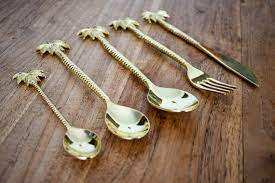 New Flatware Sets butterfly Gold Brass Metal Tea Spoon Cutlery Set for Restaurant