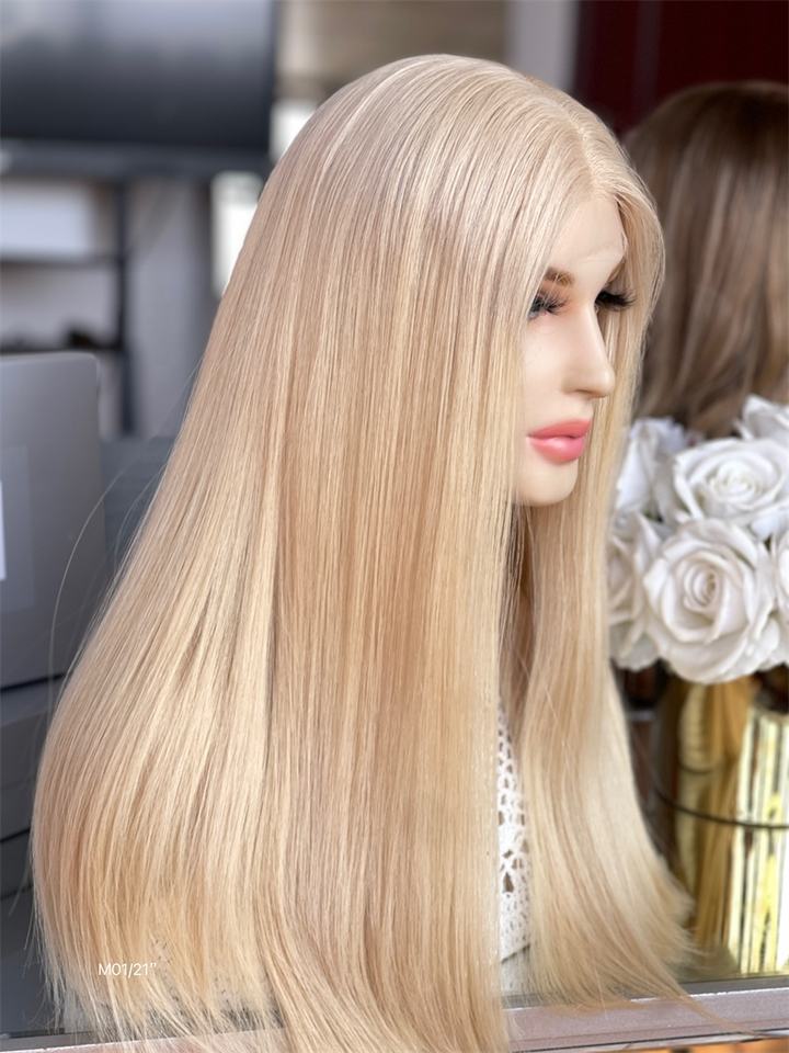New Designed Premium Quality Lace Top Single Color Silky Straight Human Hair Blonde Jewish Kosher Wigs