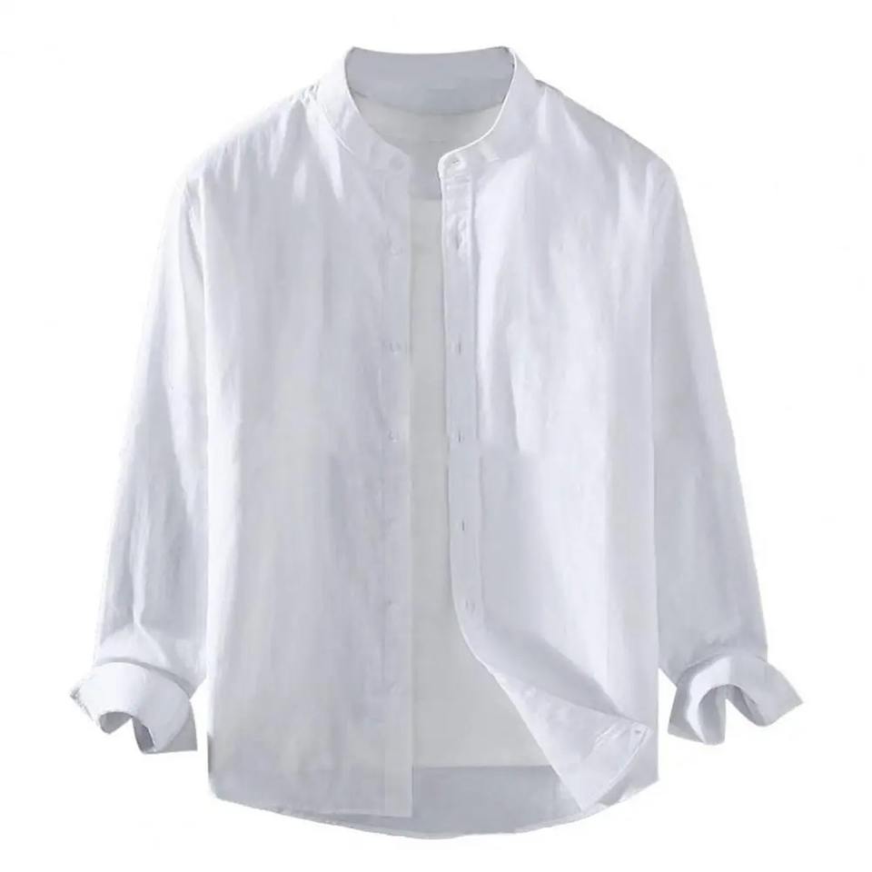 New Designer 100% Linen Long Sleeved Shirt Men Casual Solid White Button up Shirts for Men Top
