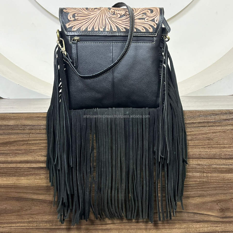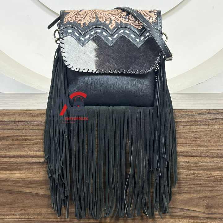 Product name:Hand Tooled Cowhide Leather Fringe Crossbody Bag