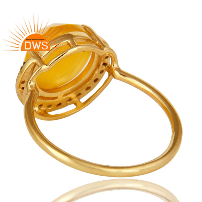 New Designer 925 Silver Yellow Moonstone Cocktail Ring for Wedding Wholesale 18k Gold Plated Jewelry Classic Collection