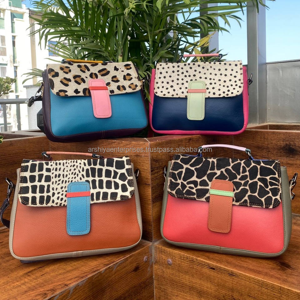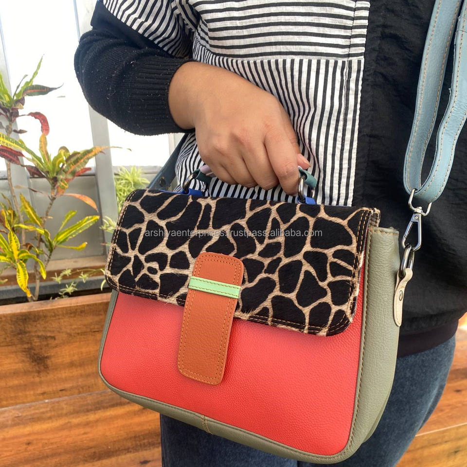 New Designer Animal Print Recycled Leather Handled Crossbody Bag for Women Famous Brand Luxury Colorful Leather Shoulder Handbag
