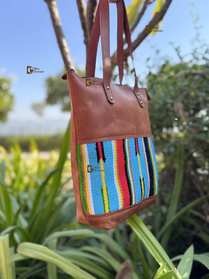 New Designer Aztec Saddle Blanket Leather Handbag Genuine Leather Tote Bag Handbag Western Pattern Hot Sale Shoulder Handbag