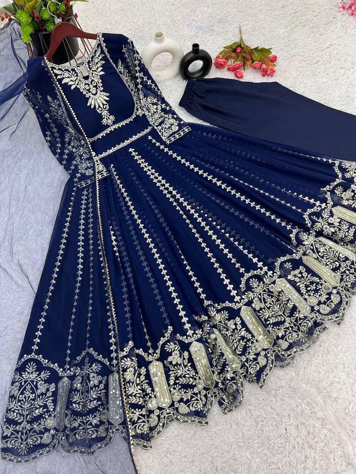 Product Name:Faux Georgette Sequence Embroidery Gown And Bottom & Dupatta