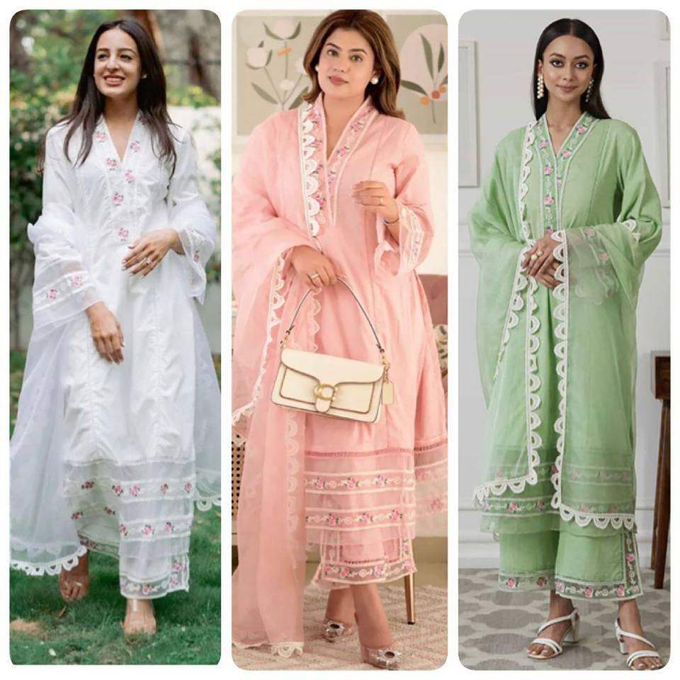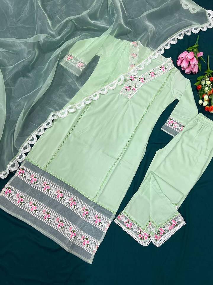 New Designer Cotton Silk Ethnic Wear for Parties Embroidery Work Kurti Pant Set Eco-Friendly Natural Waistline Top Dupatta