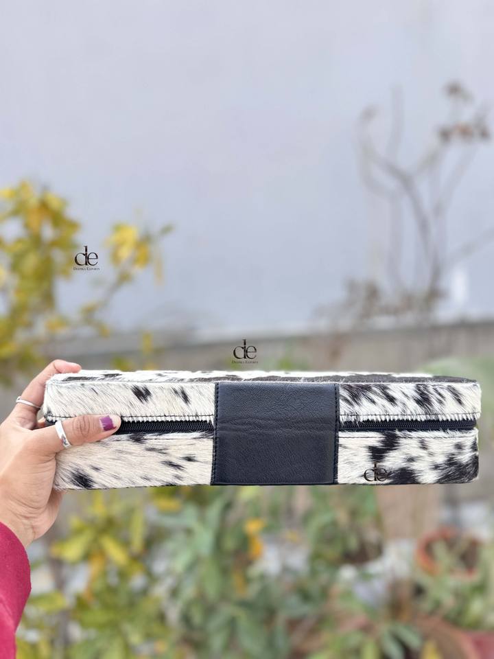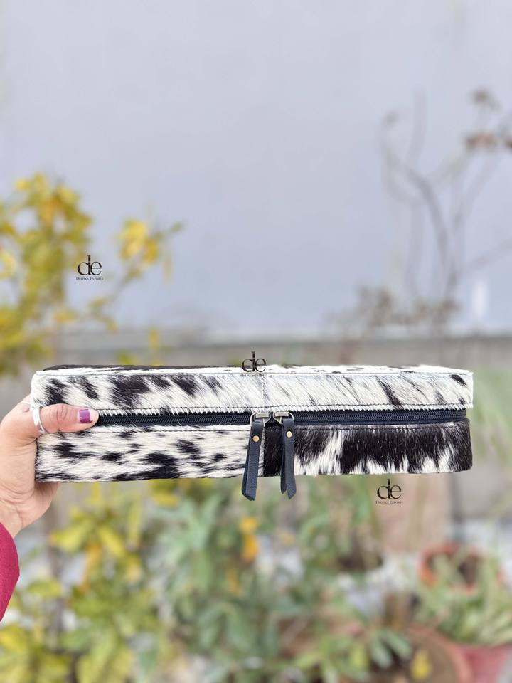 New Designer Cowhide Fur Leather Heat Resistant Leather Hair Straightener Curling Iron Cases Perfect Organizer for Hair Tools