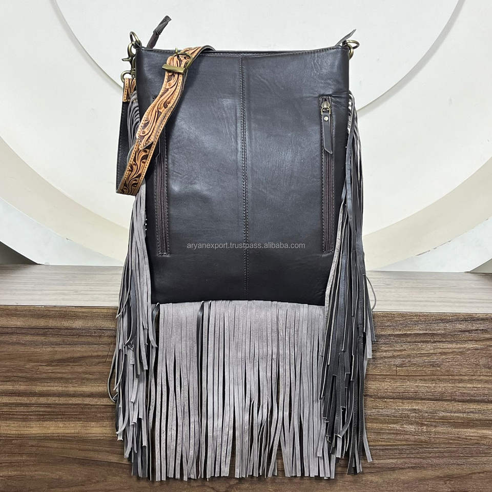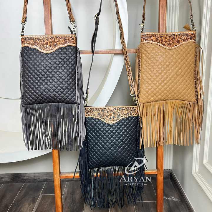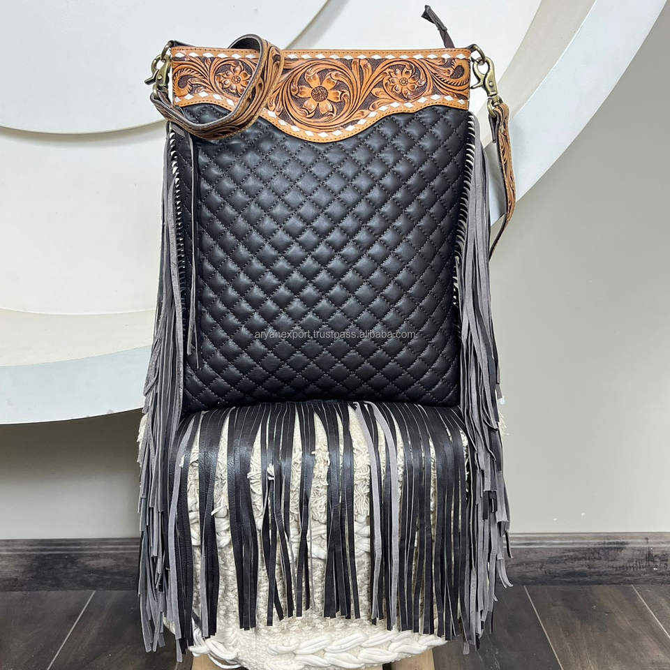 New Designer Hand Tooled Quilted Leather Large Fringe Crossbody Shoulder Bag High Quality Genuine Leather Luxury Women Handbag