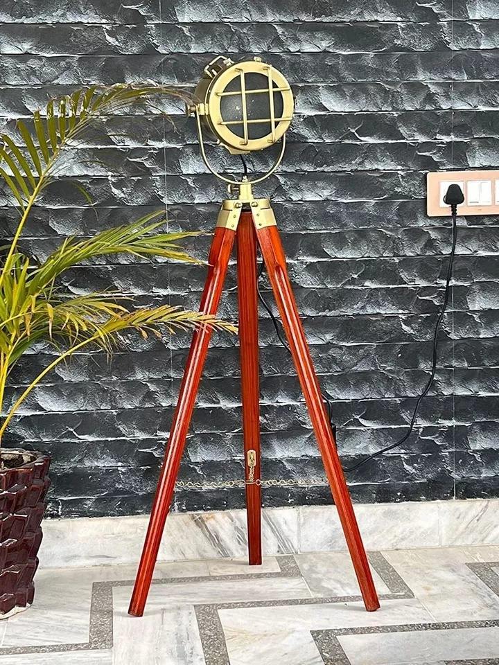 New Designer Handicraft Wood Shade Nautical Tripod Floor Lamp Antique Style Marine Signal Best Spot Light with Metal Bulbs Light